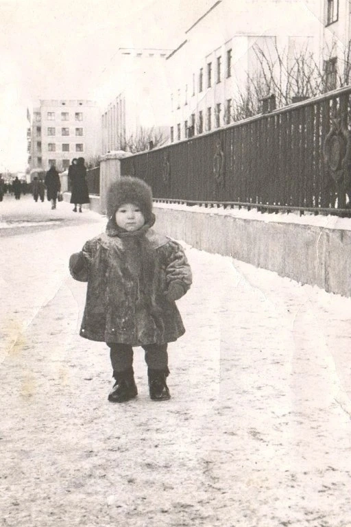 Фотография 1988 года. Изображение города на фоне портрета. Источник: @ (Абрам-мыс в фотографиях).