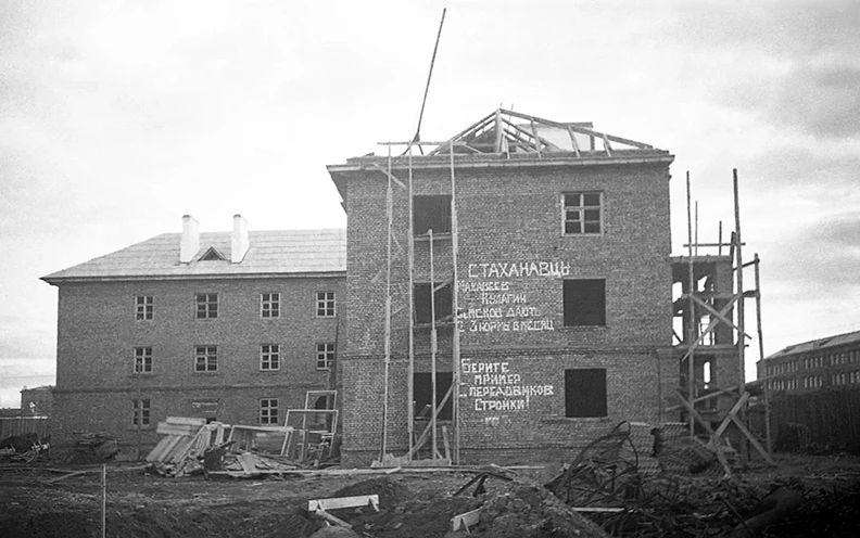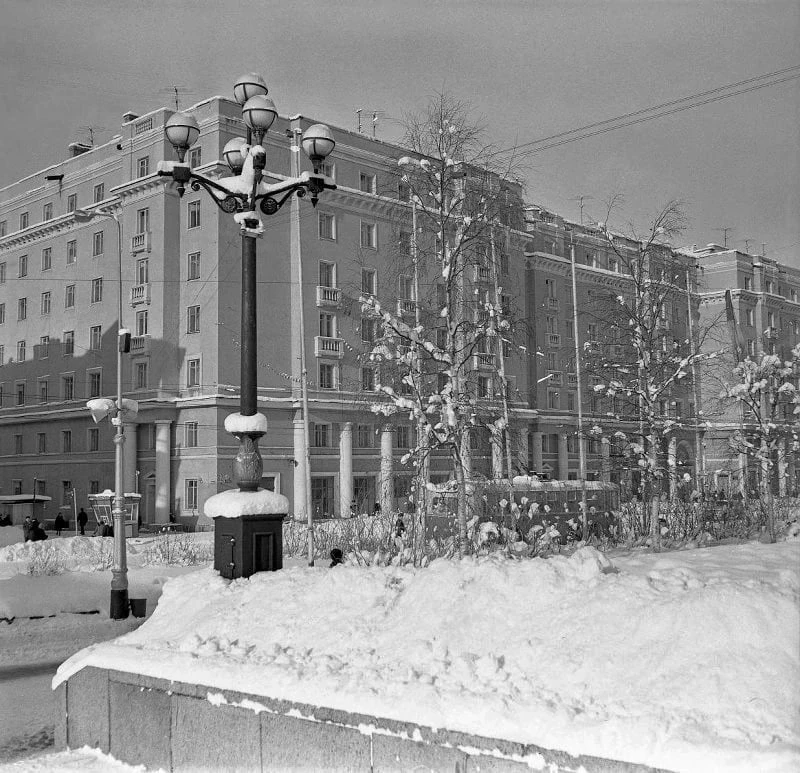 В 1949 году возводили квартал из малоэтажных домов на пересечении улиц Челюскинцев и Октябрьской. Информация взята из фонда «Мурманского областного краеведческого музея».