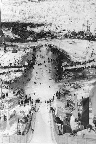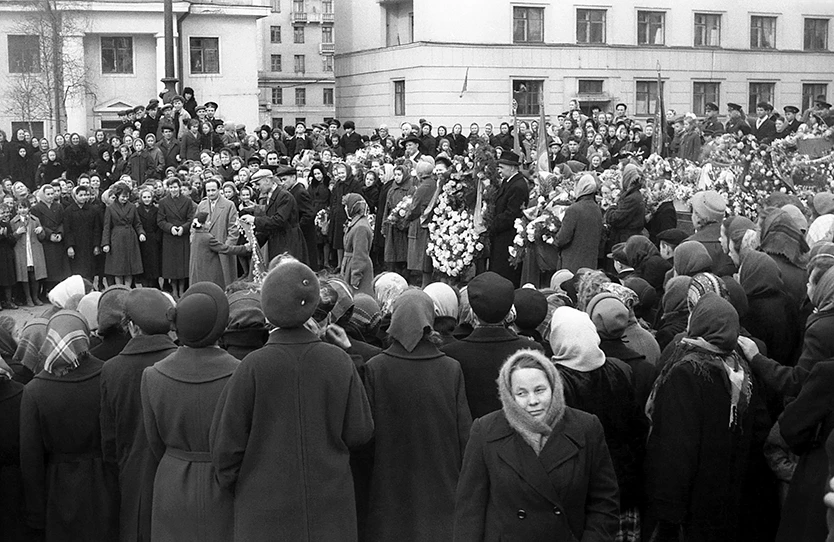 В 1985 году состоялось торжественное шествие к мемориалу, посвящённому защитникам Советского Заполярья в период Великой Отечественной войны. Фотография этого события была сделана Е. Г. Лубенец. Источник информации — фонд «Мурманского областного краеведческого музея».
