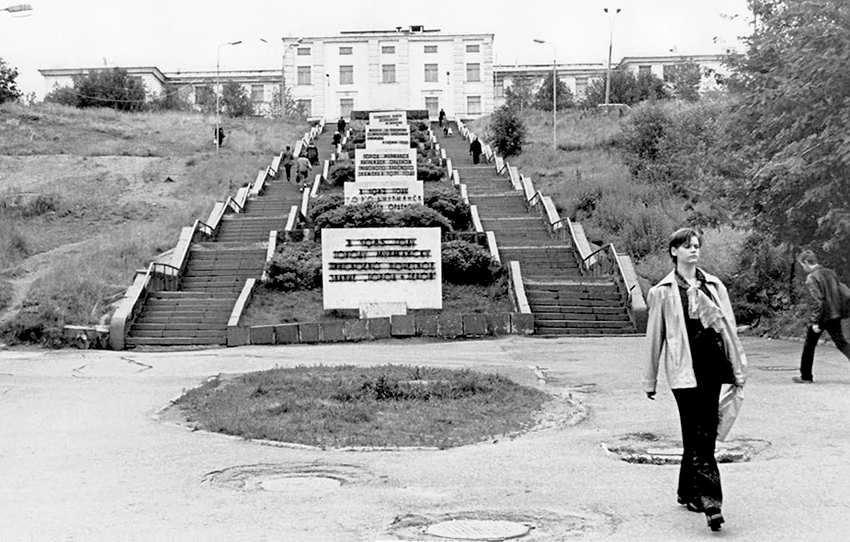 Фотография из архива «Вечернего Мурманска»: лестница, ведущая с улицы Воровского на улицу Буркова. Снято в 90-е годы.