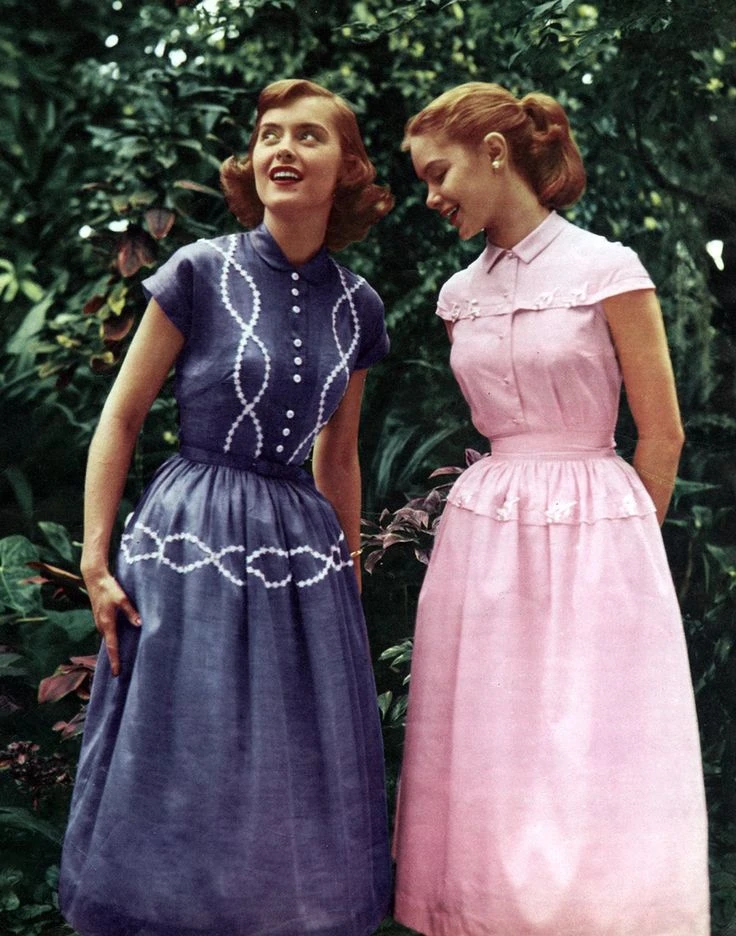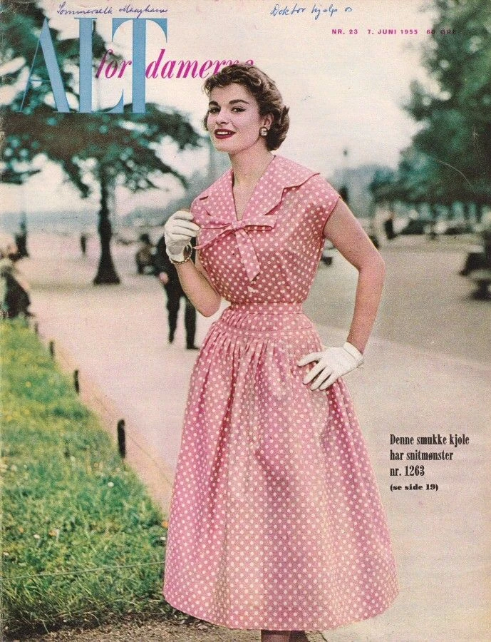 (Для более точного представления измерьте ширину выкройки по окружности груди, прибавка на половину окружности груди в конце 1950-х и начале 1960-х обычно 4 см, к талии - 2 см, но может быть и более плотная талия.)