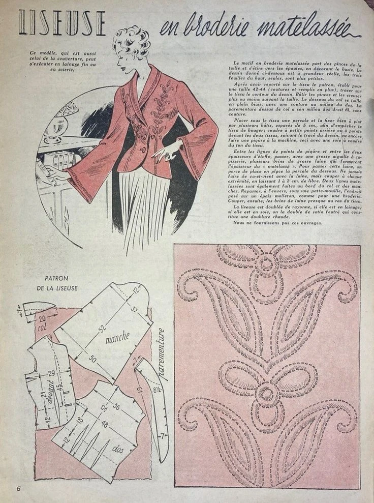 Ночная кофточка с объёмной вышивкой. #винтажные_выкройки