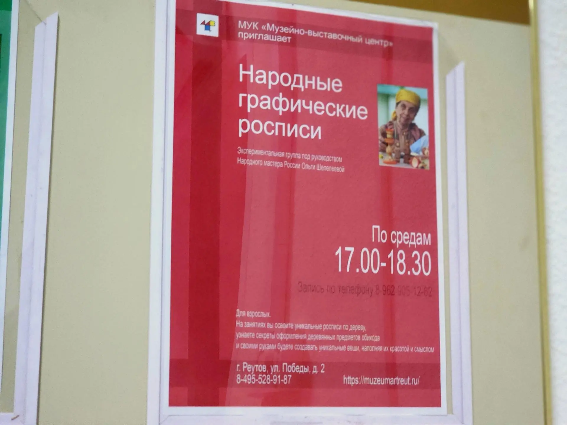 В Музейно-выставочном центре Реутова проходят уникальные занятия, посвященные старинному народному промыслу — пижемской росписи. Под руководством народного мастера России Ольги Шелепеевой жители города получают возможность прикоснуться к культурному наследию, корни которого уходят во времена Великого Новгорода. Мастер сохраняет и передаёт традиции этого ремесла уже более сорока лет, внося весомый вклад в сохранение нематериального достояния страны.