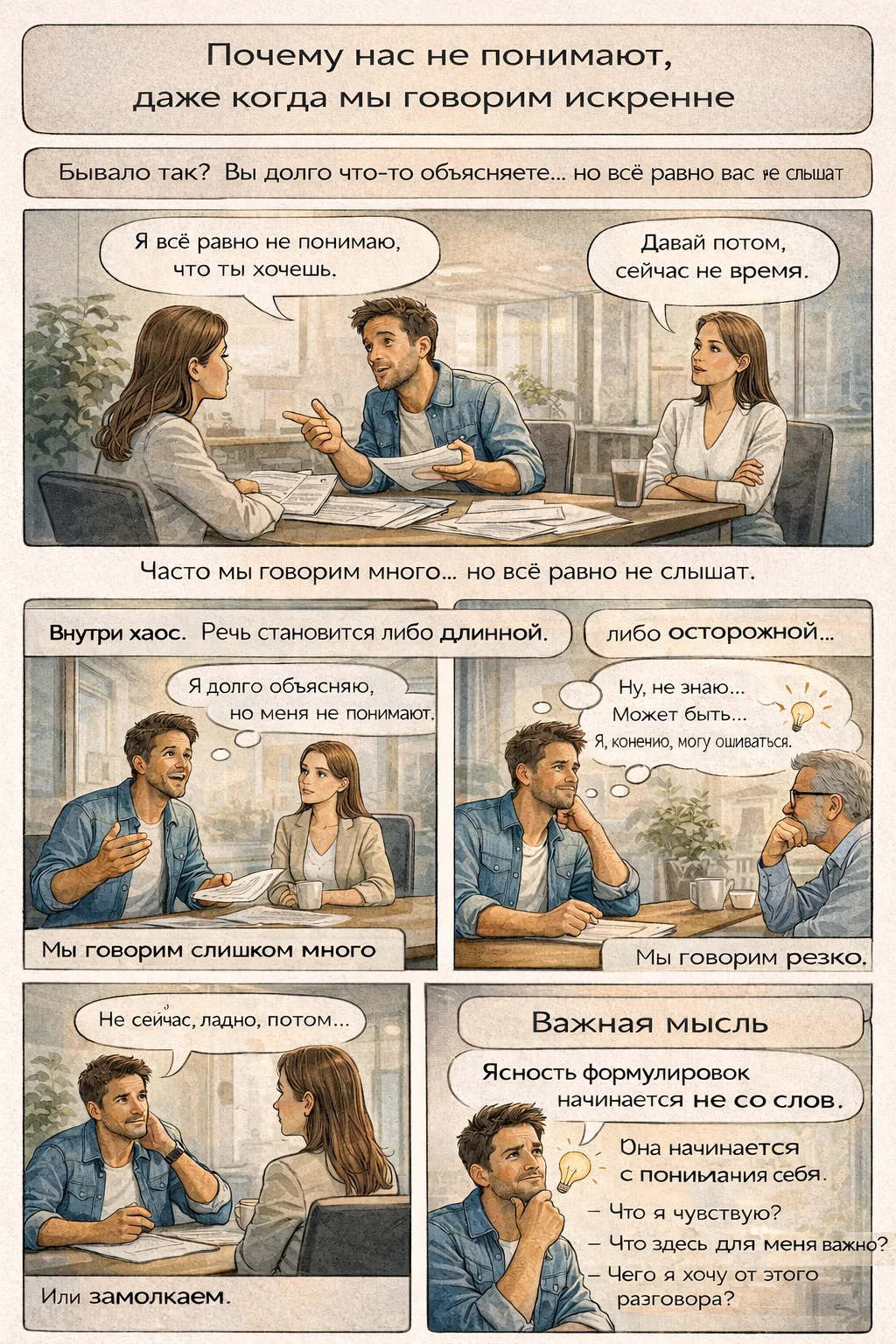 Иногда после разговора остаётся странное ощущение. Вроде бы, всё объяснили, никого не обидели, никого не продавливали. А внутри напряжение или пустота, или мысль: "Опять как-то не так…"