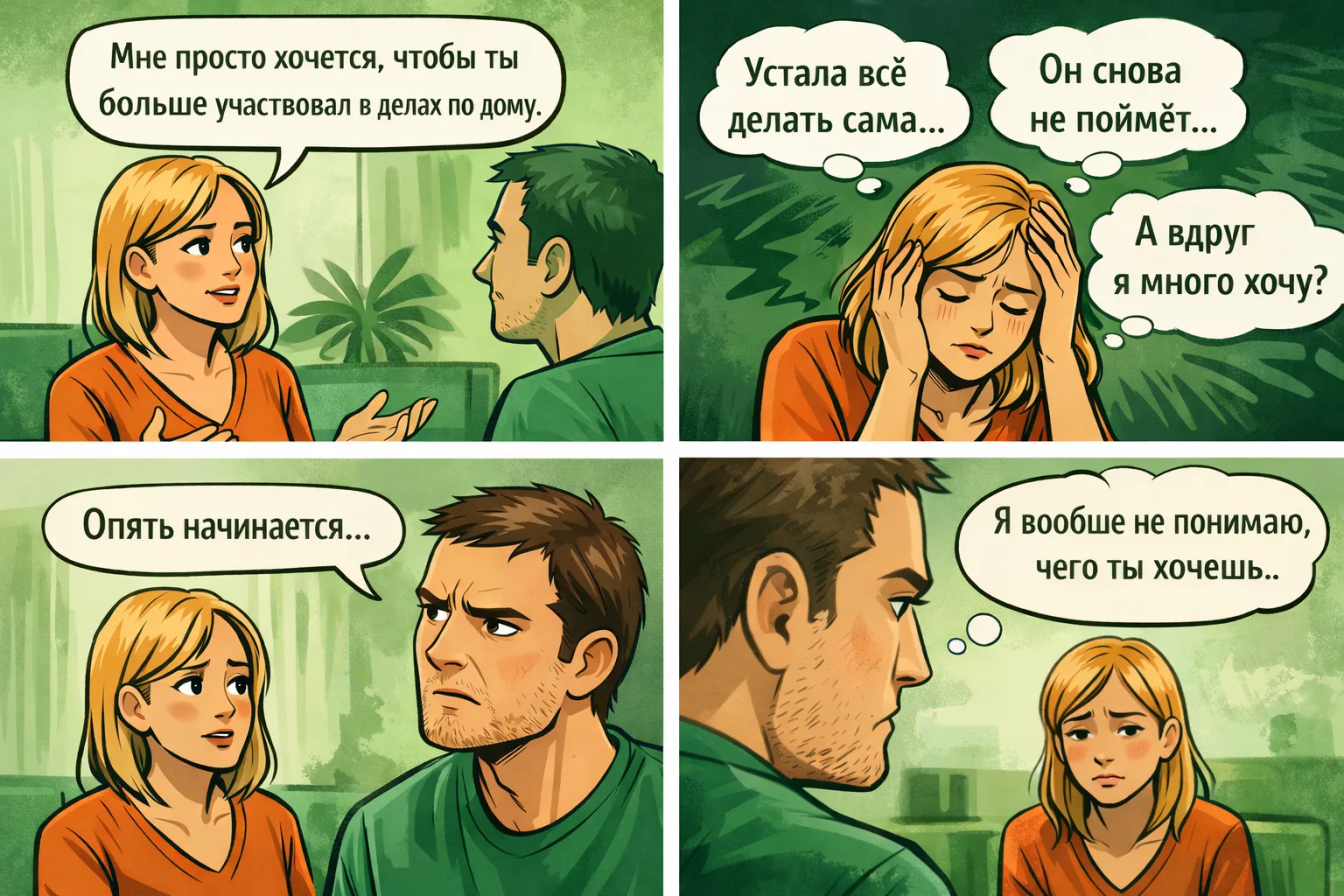 Очень знакомая бытовая ситуация из семьи: когда мы заранее ждём, что нас не услышат, напряжение появляется ещё до разговора. И тогда даже спокойная просьба звучит как упрёк или приказ.