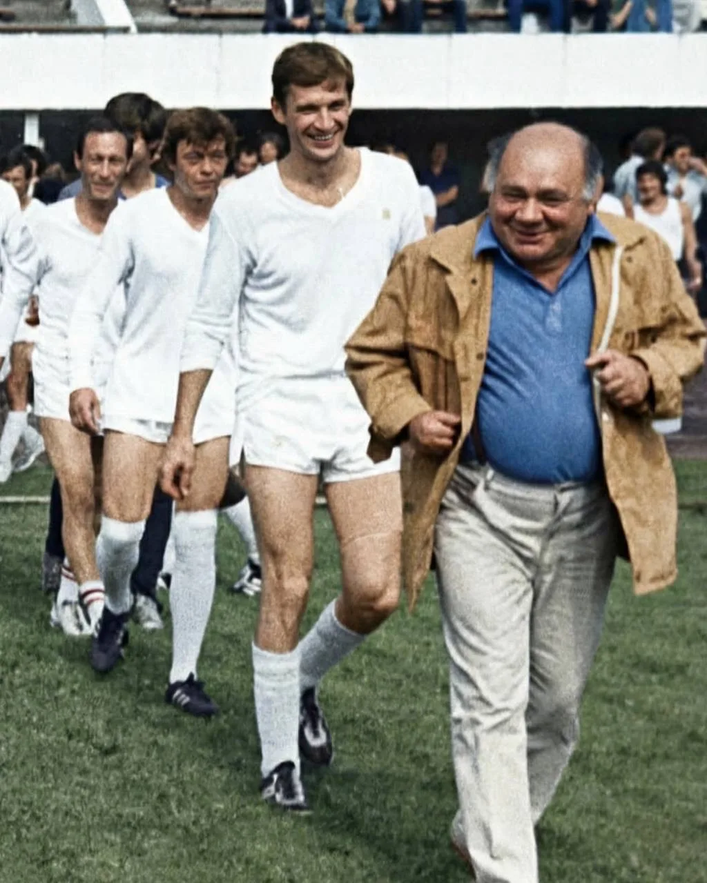 На трибунах собралось 20 000 зрителей, чтобы посмотреть на известных артистов, а настроение поддерживал, игравший на стадионе оркестр. Уже после игры это событие назовут «Матчем века», который объединил театр и футбол 🙌