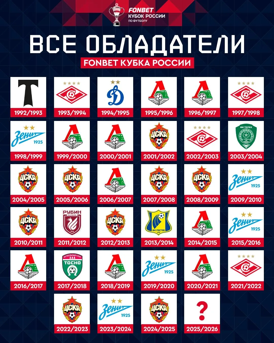 Все победители FONBET Кубка России 🏆