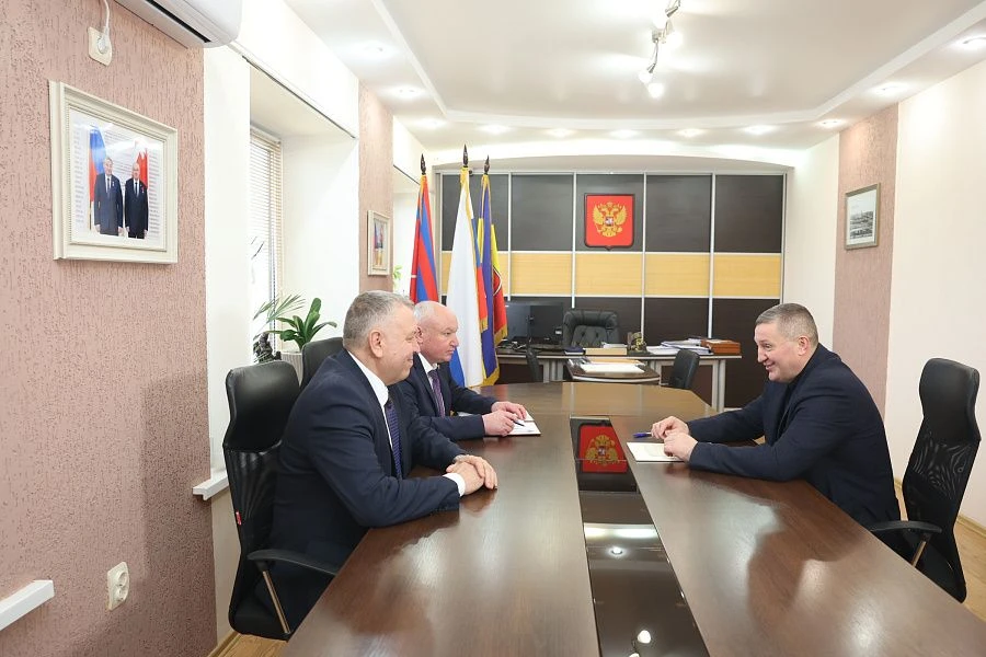 Губернатор Волгоградской области Андрей Бочаров провел рабочую встречу с президентом общероссийской общественной организации малого и среднего предпринимательства «ОПОРА РОССИИ» Александром Калининым.