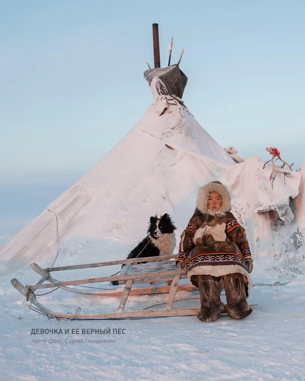 Девочка Лиза и её пёс провожают последние солнечные дни в декабре. Его ненцы называют месяцем «малой темноты» — «Нюдя пэвдей».