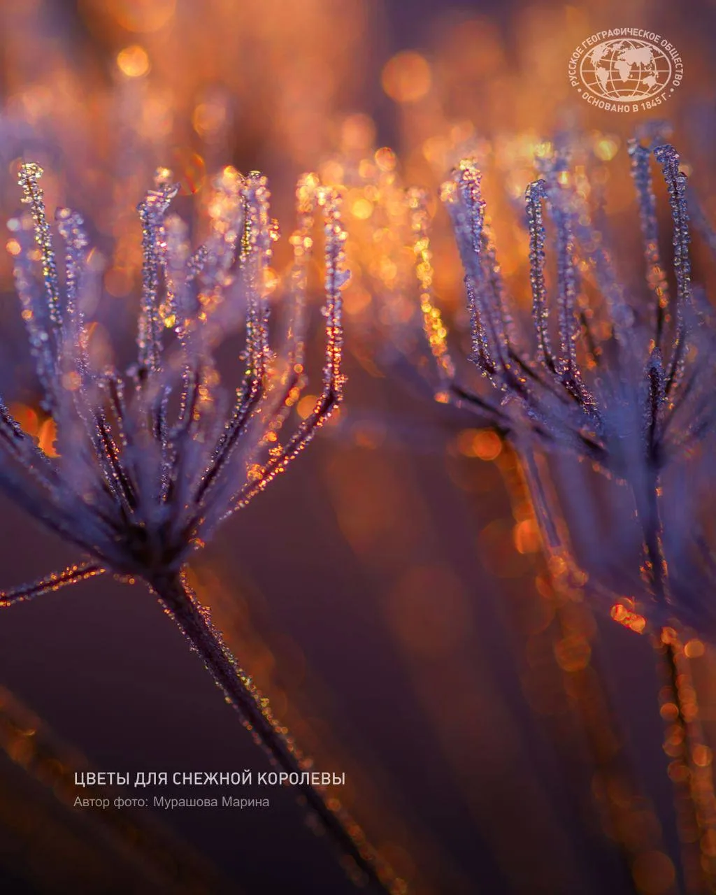 Такие вот необычные цветы «расцвели» морозным днём на засохших прошлогодних ветках клевера лугового.
