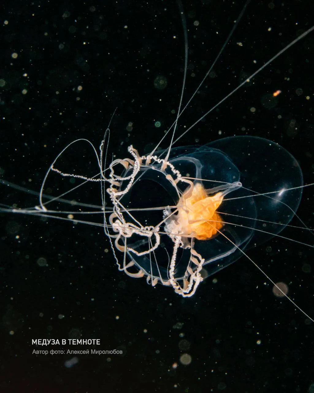 Гидромедуза Perigonimus yoldia-arctica в планктоне! Медузу так назвали в честь двустворчатых моллюсков йольдий, на раковинах которых она селится.