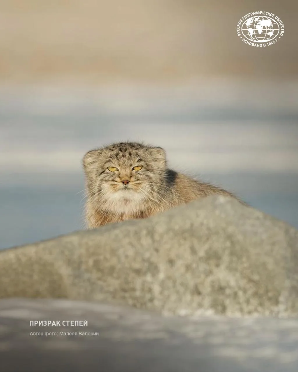 Сделать фотографии манула в его естественной среде обитания очень сложно. Этот зверь очень скрытный и ведёт сумеречный образ жизни, а ещё отлично маскируется: даже если на льду степного озера остался единственный камень.