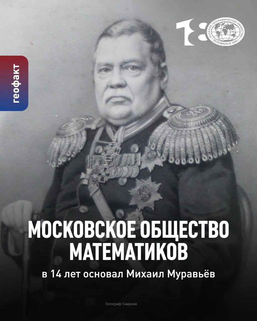 🤓 Чтобы популяризировать знания, Михаил Муравьёв-Виленский — один из основателей РГО — создал «Московское общество математиков». Здесь он читал бесплатные лекции по геометрии.