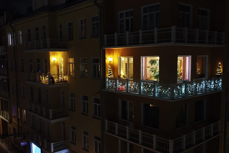 Если разрешение от УК или ТСЖ не получено - безопаснее разместить гирлянду внутри окна или на балконе, советует Машаров. Это гарантированно избавит от претензий.