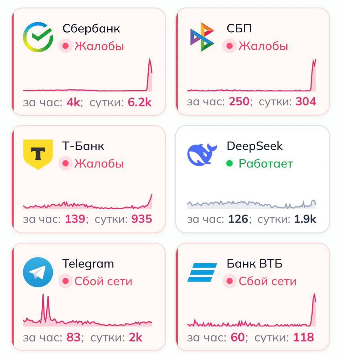 ⚡️ Российские банки массово умерли — масштабный сбой фиксируется у Сбера, Т-Банка, ВТБ и СБП