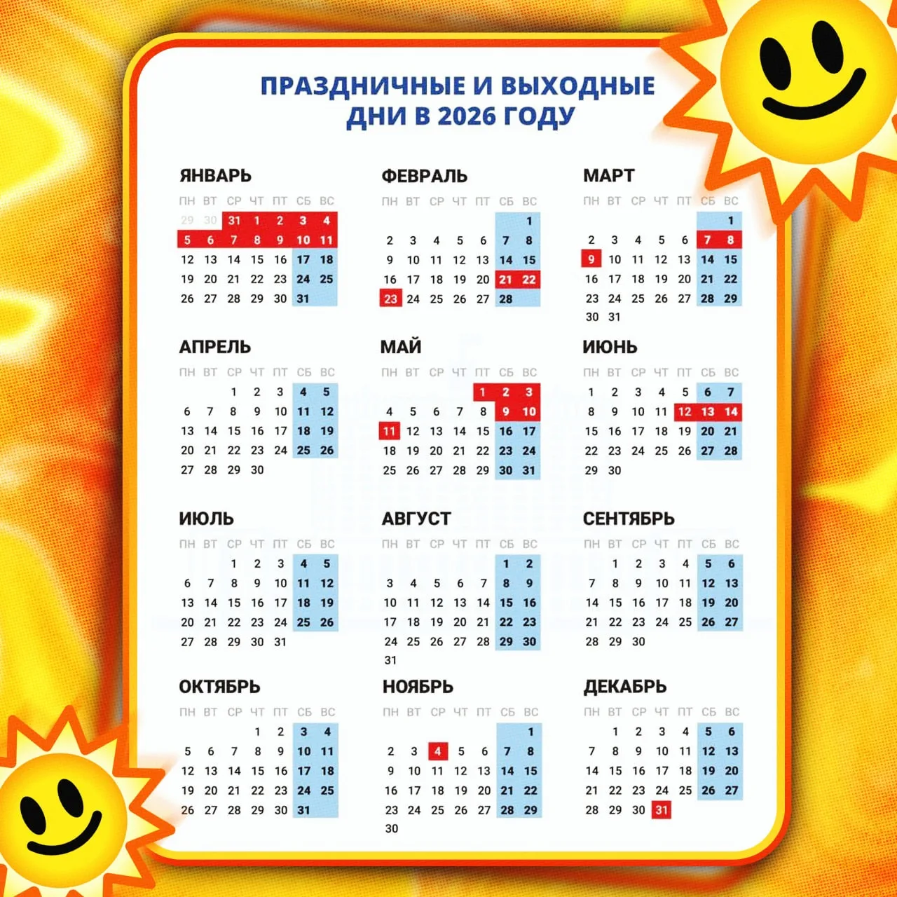 Сразу СЕМЬ сокращённых рабочих недель и ни одной шестидневки ждут россиян в 2026 году 🗓