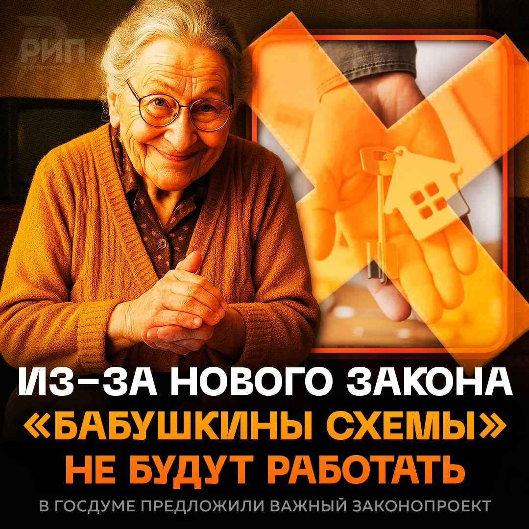 ⚡️ Бабули-скамеры больше не смогут забирать проданные квартиры обратно — в Госдуму внесён законопроект о борьбе с «бабушкиной схемой» при продаже жилья