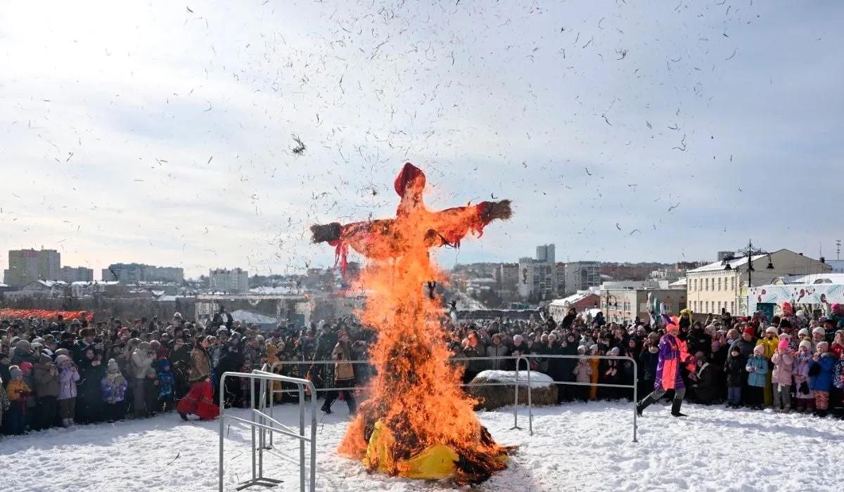 Кульминация - сожжение чучела зимы. У предков это было связано с хорошим урожаем.