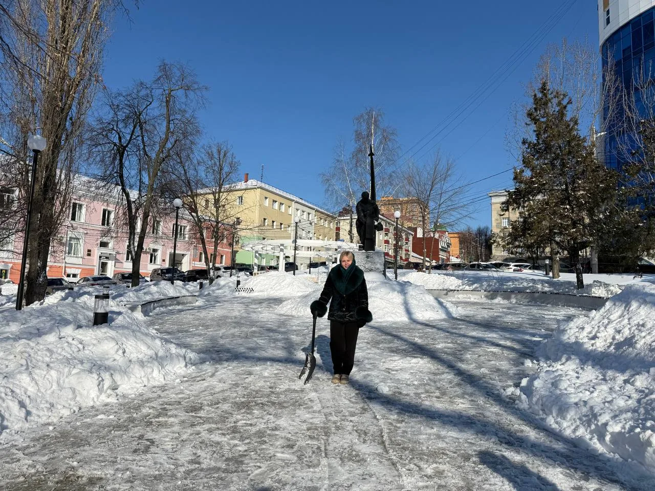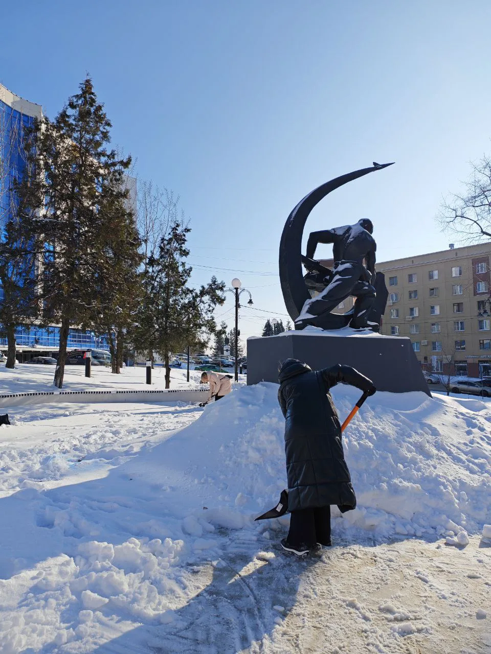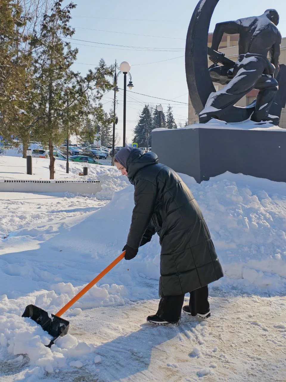 Коллективы РИА «Курск», министерства информации и общественных коммуникаций региона, «Курской правды» и «Сейма» вместе расчистили от снега сквер «Спутник» в центре города и подходы к нему.