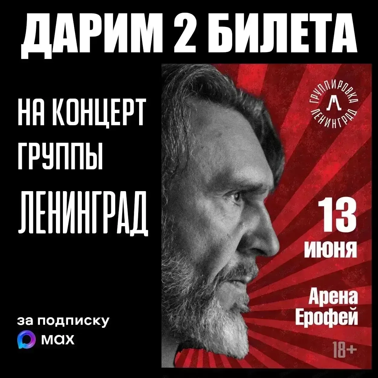 🎸ДАРИМ 2 БИЛЕТА НА КОНЦЕРТ ГРУППЫ "ЛЕНИНГРАД" (18+)
