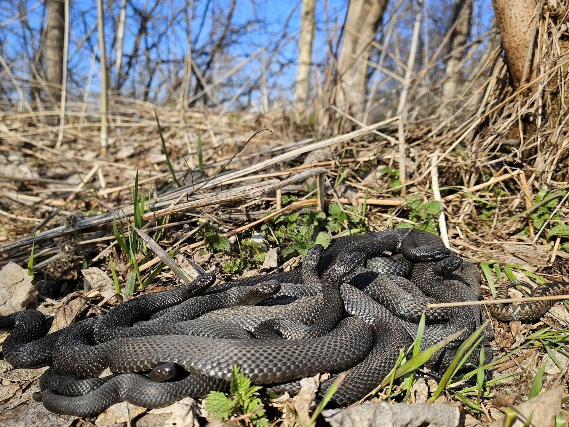 Сейчас они как раз выходят из спячки и сбиваются в кучки перед началом периода размножением.