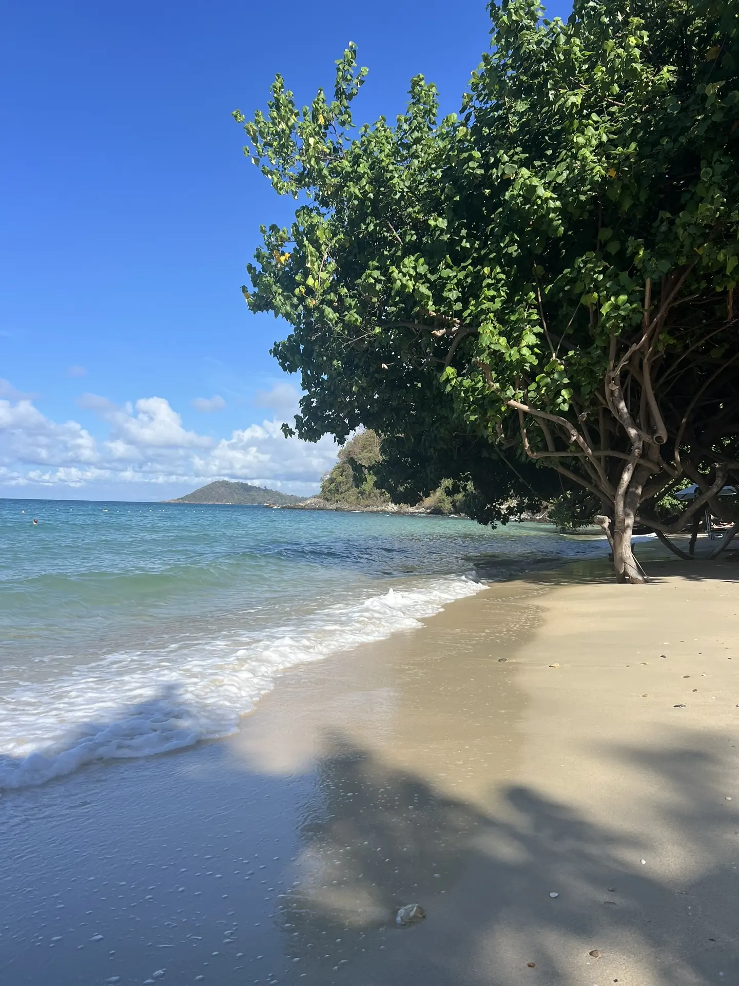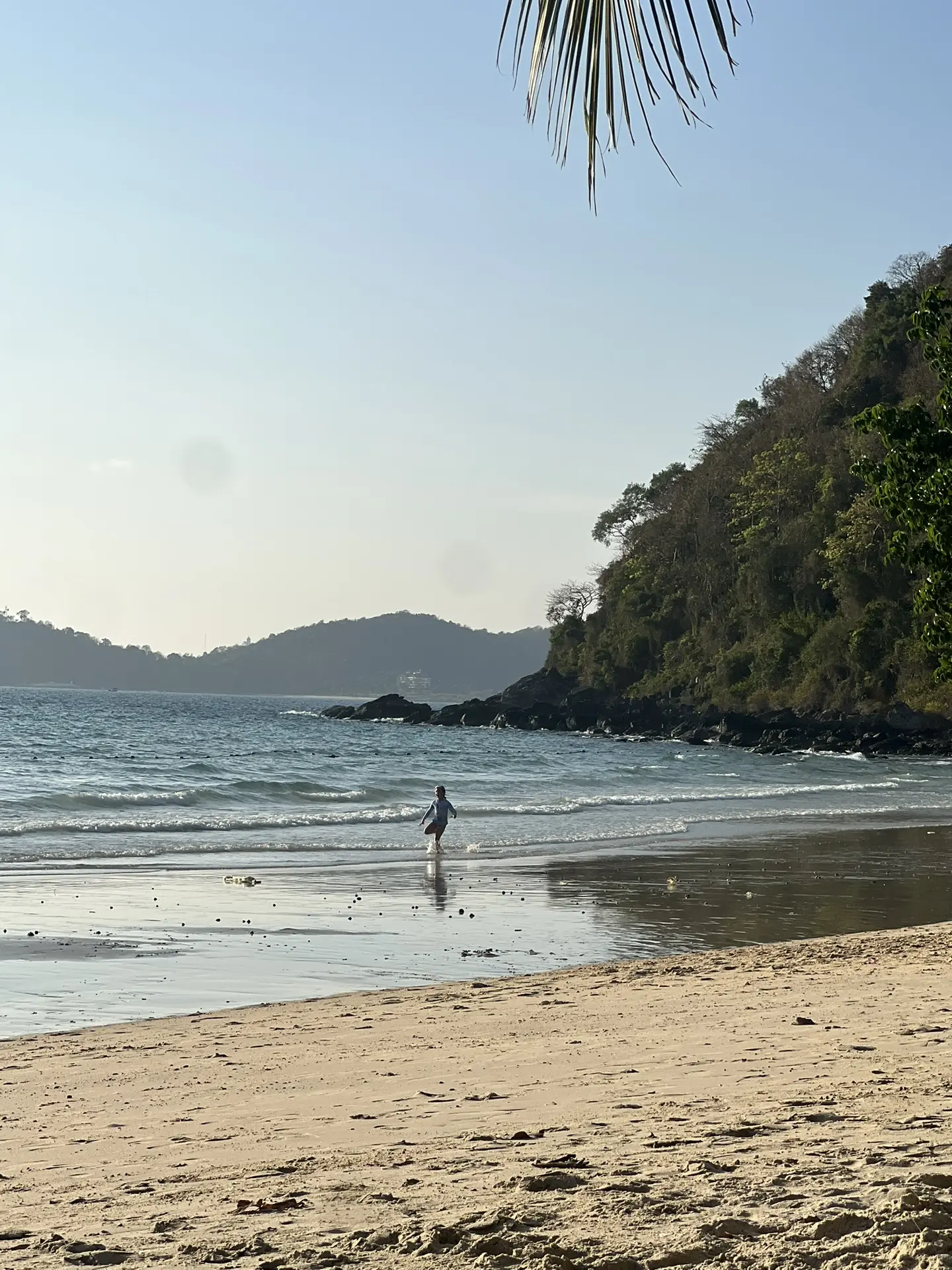 Кусочек пляжа и моря. Оно здесь теплое и чистое.