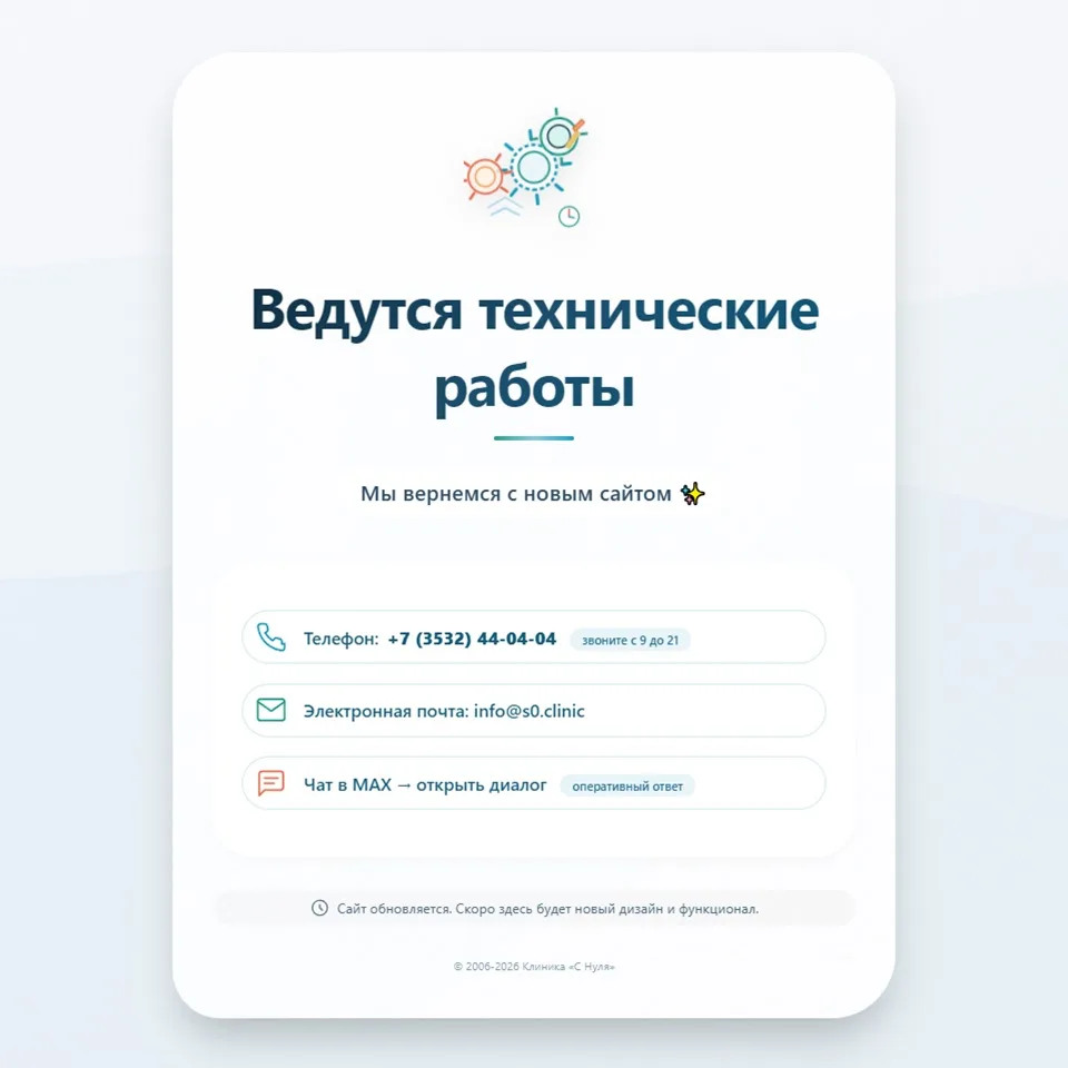 В связи с запуском нового сайта, завтра, 16 апреля в Клинике не будет вестись очный приём врачей, сдача анализов и вакцинация.