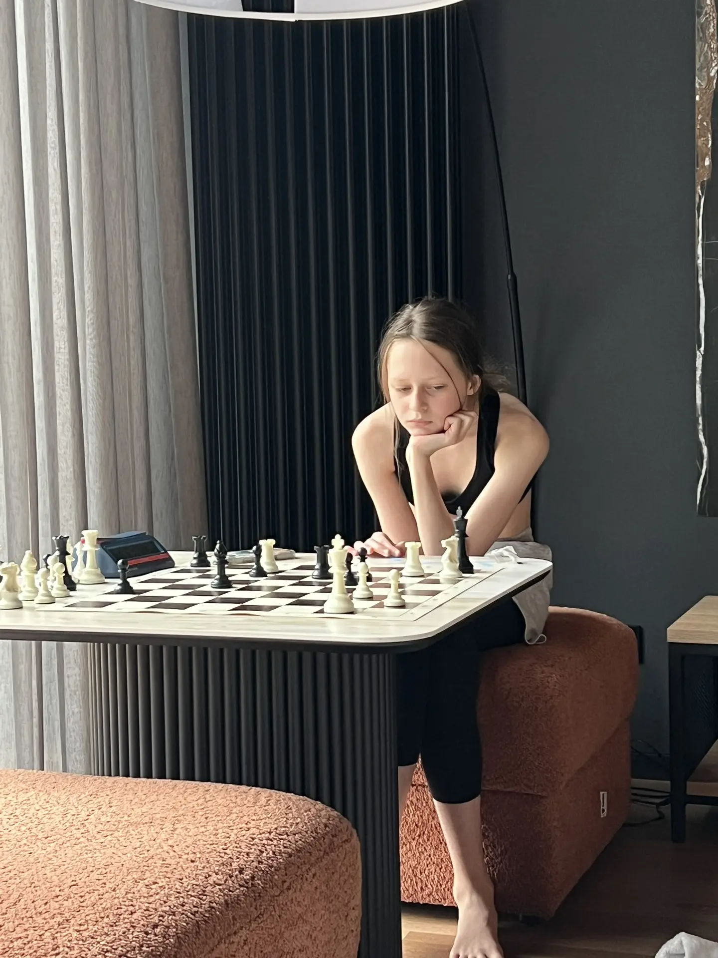 У меня сегодня в планах из моих дел только пройти мои километры, у Дианы турнир, рисование, разбор партий и какая-нибудь активность, а у Аиши выходной, но будут задачи, книги и рисование точно.