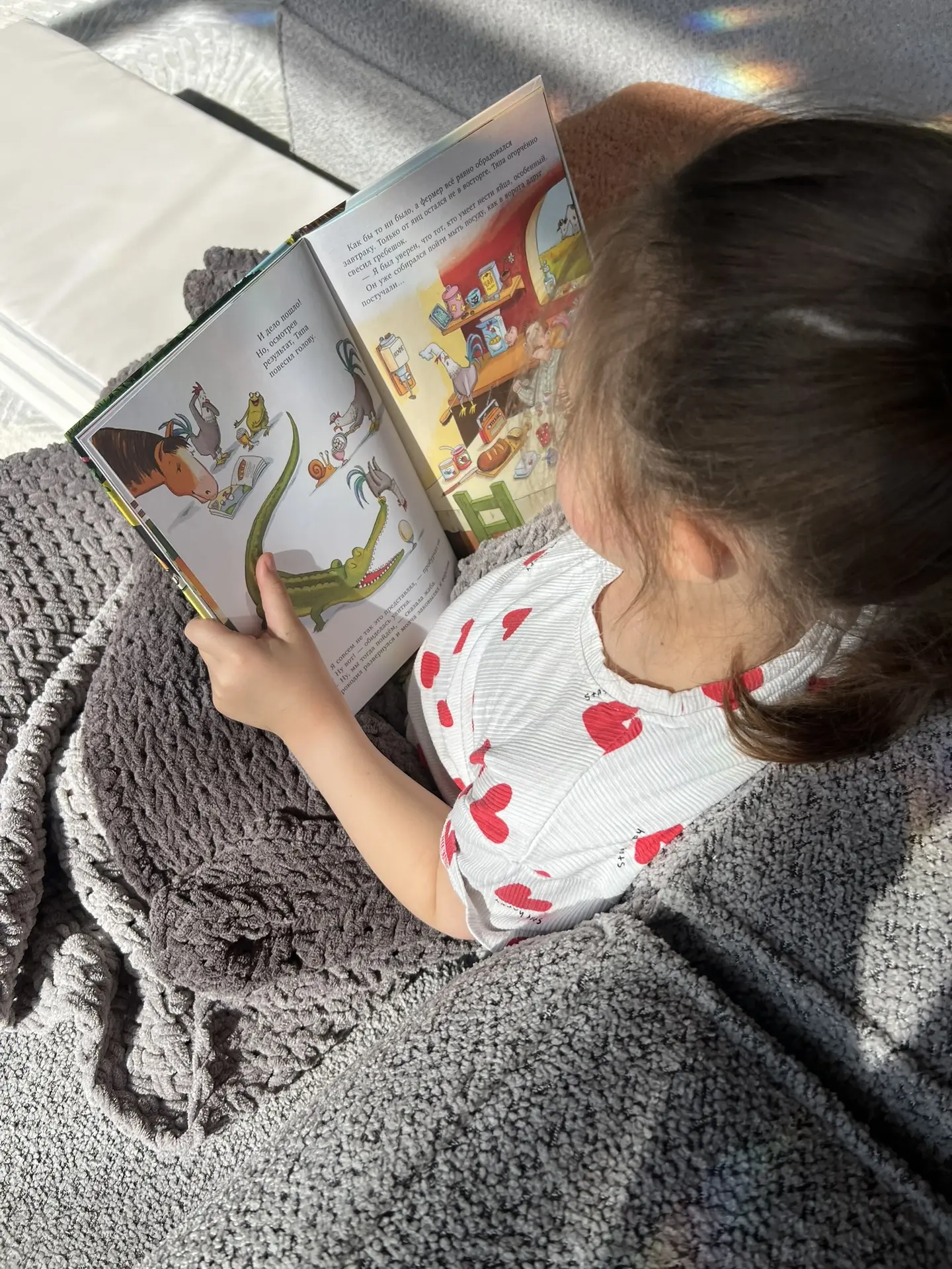 Барышня сегодня выбрала книгу про эмоции. Для нее это интереснее, чем комиксы.