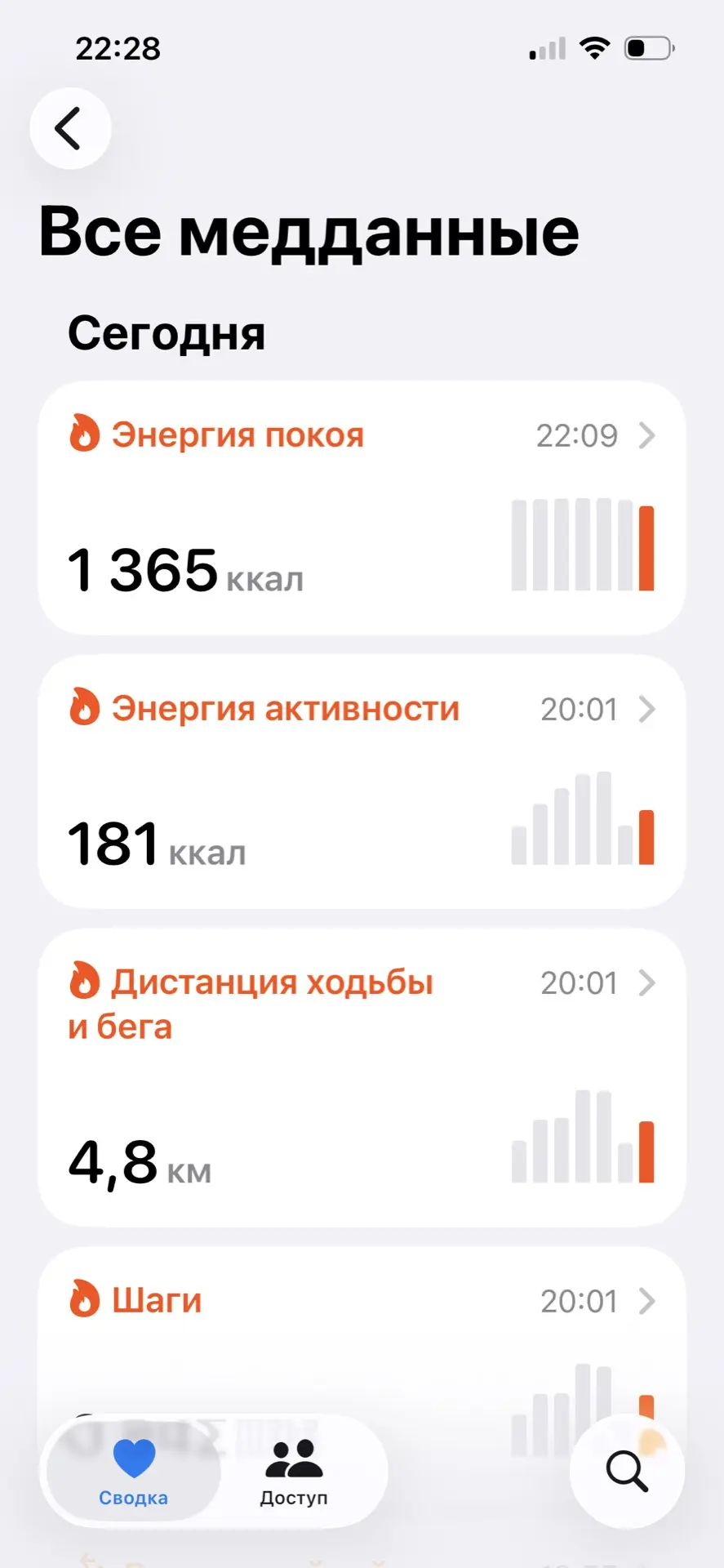 У меня из физической активности вчера была силовая тренировка, пять минут лестницы и три километра ходьбы по городу.