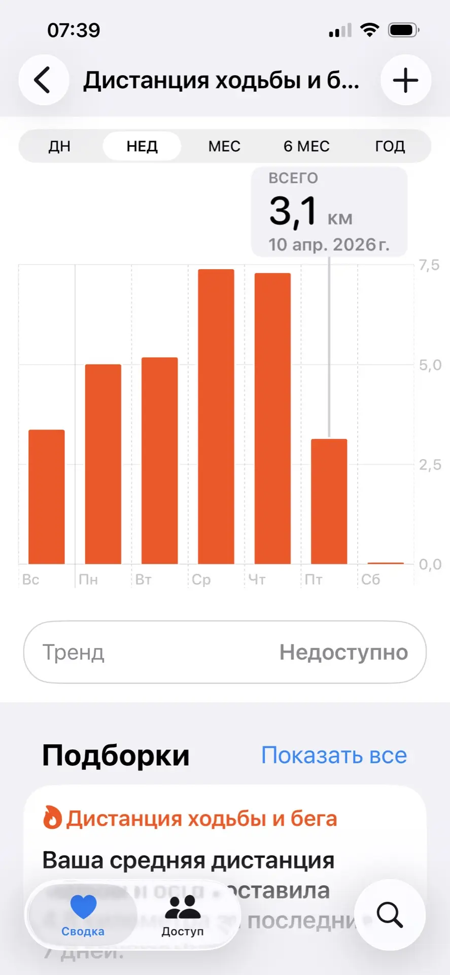 В пятницу сил всегда меньше и я решила, что и трех километров будет достаточно. Тем более видно, что в среднем у меня получилось повысить активность и это главное.
