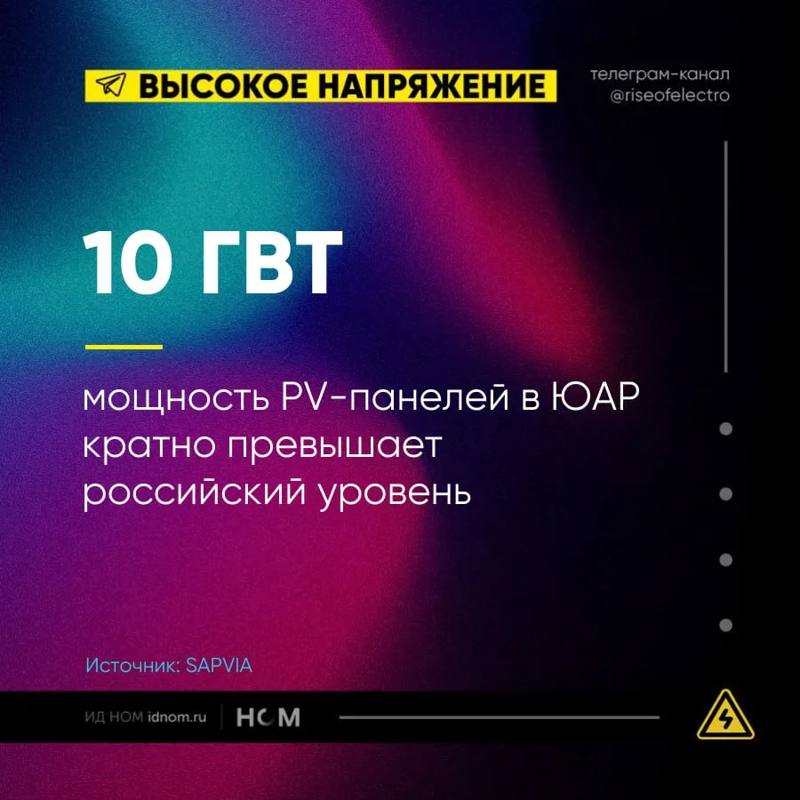В 2025 г. в Южной Африке было введено в строй 1,6 ГВт солнечных панелей – на 45% больше, чем годом ранее. По данным южноафриканской ассоциации фотоэлектрической промышленности (SAPVIA), установленная мощность PV-модулей в стране превысила 10 ГВт.