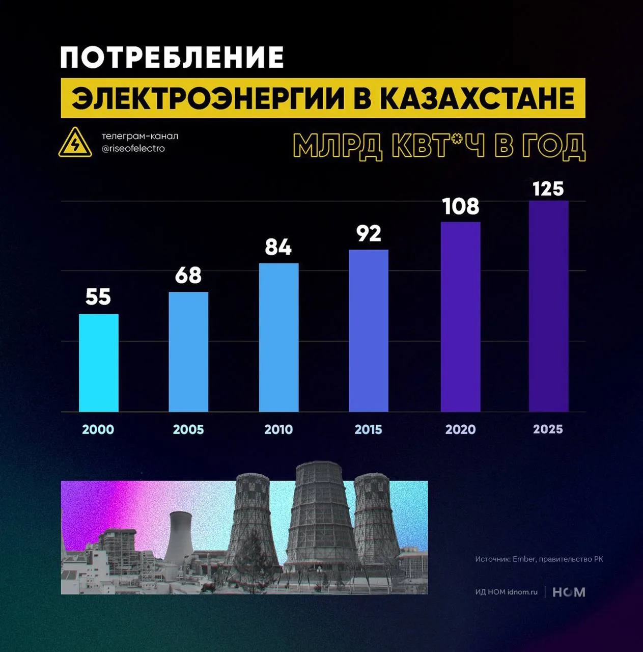 Для сравнения: общий спрос на электроэнергию в Казахстане в 2025 г. составил почти 125 млрд кВт*ч.