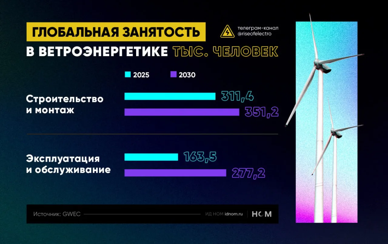 ️ Глобальная занятость в электроэнергетике в 2024 г. выросла на 4% и достигла 22,6 млн человек, из них 14,2 млн человек приходились на выработку электроэнергии, а 8,4 млн – на ее передачу, распределение и хранение. Такие данные приводит МЭА в свежем выпуске обзора World Energy Employment.