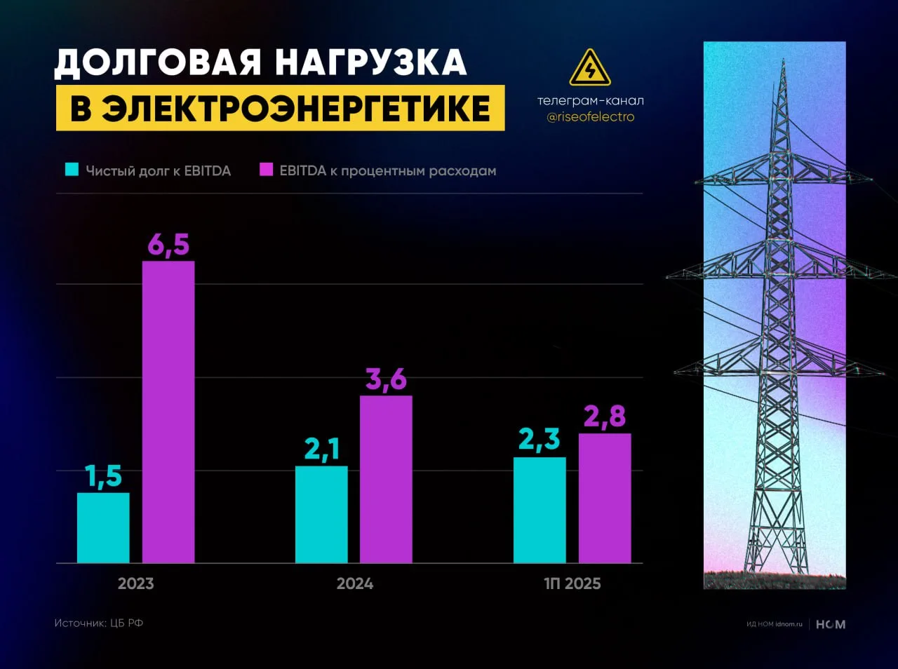 - Речь идет о бедственном положении угольной отрасли, где соотношение чистого долга к EBITDA достигло 6,7 по итогам первой половины 2025 г., а соотношение EBITDA и процентных расходов – 0,9.