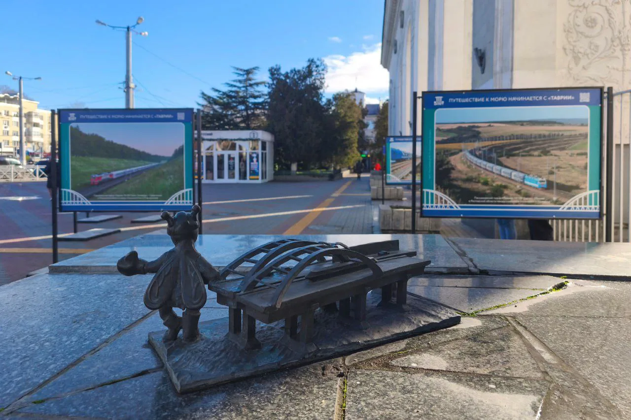 В Симферополе открылась передвижная фотовыставка, посвященная пятилетию запуска поездов «Таврия» через Крымский мост