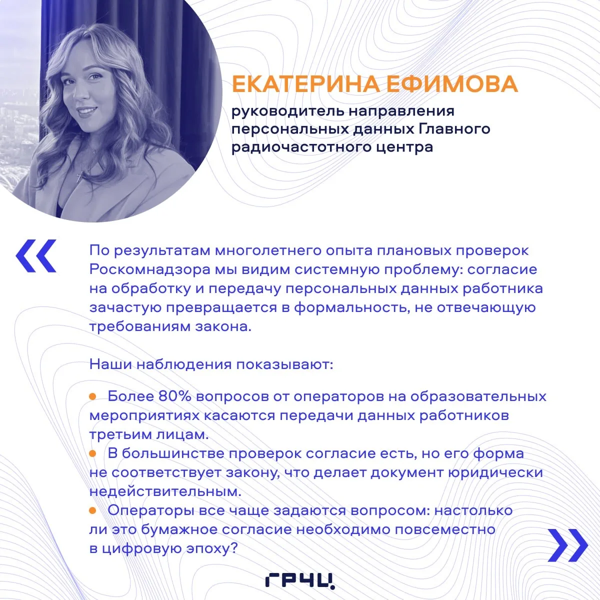 28 января прошла посвященная персональным данным конференция Privacy Forum. Екатерина Ефимова, руководитель направления персональных данных Главного радиочастотного центра, рассказала о разработке отраслевых стандартов обработки персональных данных.