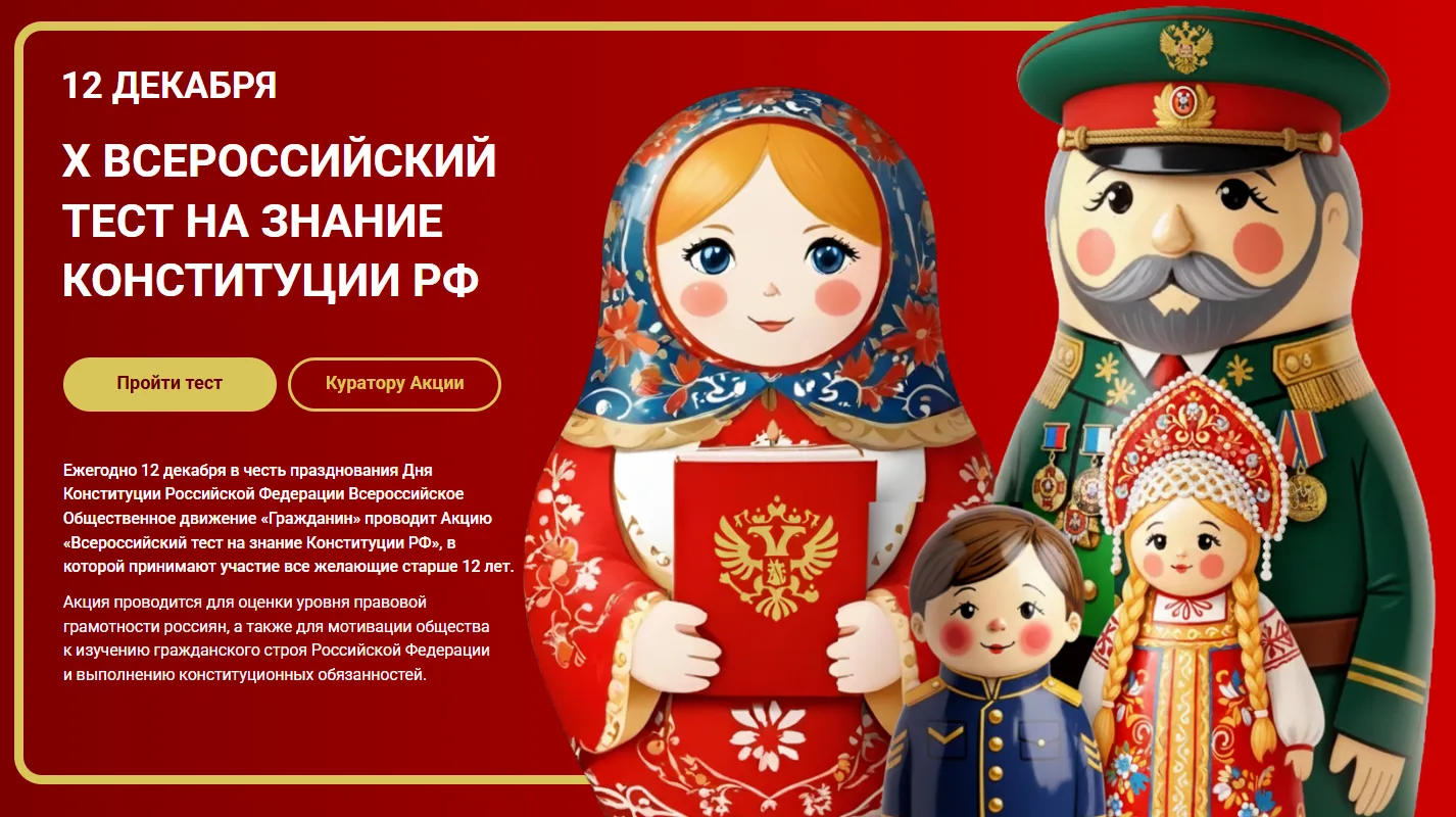 Всероссийское общественное движение «Гражданин» проводит акцию «Всероссийский тест на знание Конституции РФ».
