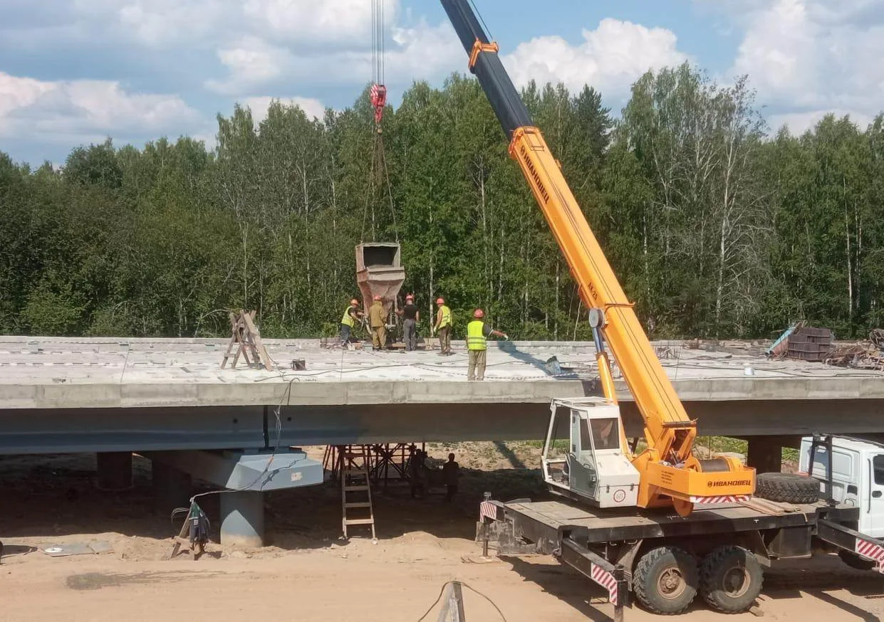 Сейчас его готовность — 69%. Строители выполняют завершающие этапы монтажных и бетонных работ. Новый мост заменит существующий, который сейчас работает с серьёзными ограничения.