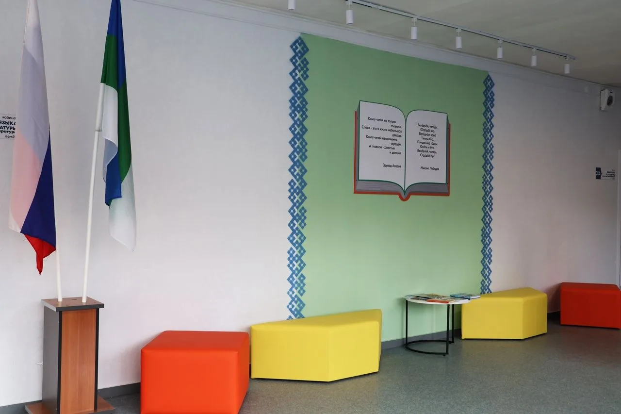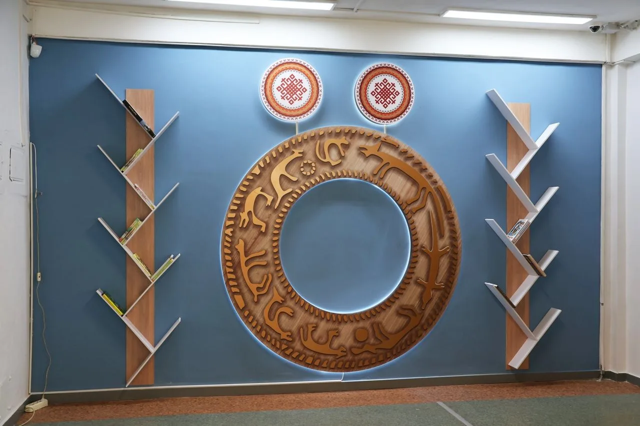 В рамках проекта приобрели мебель, трековую систему, оформили зону комфорта в виде буквы «Ӧ», а книжные полки – в стиле национального орнамента. Также провели работы по обустройству пространства.