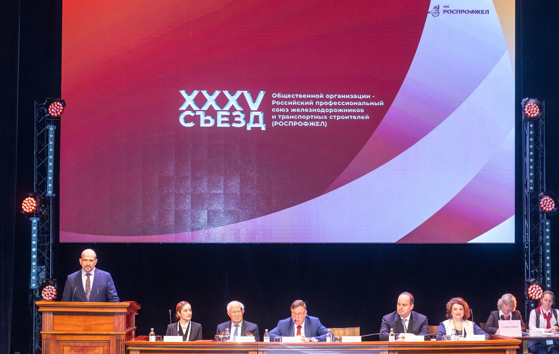 В Москве состоялся XXXV съезд Российского профсоюза железнодорожников и транспортных строителей. В нем принял участие руководитель Федерального агентства железнодорожного транспорта Александр Сахаров.