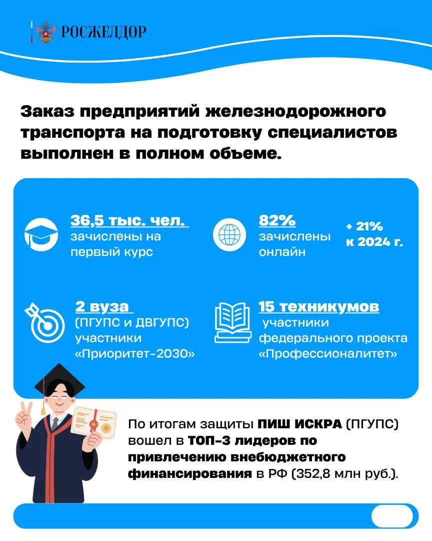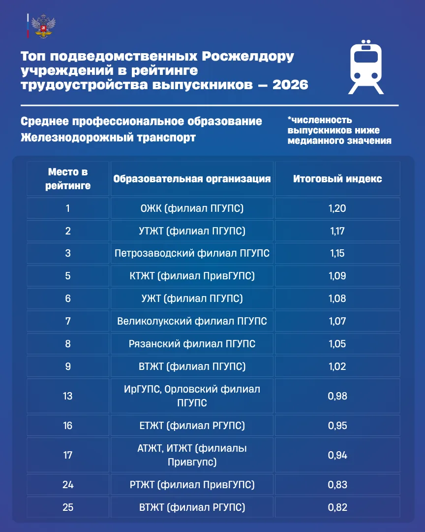 🧑🎓Подведомственные Росжелдору вузы вошли в топ Национальных рейтингов трудоустройства выпускников — 2026