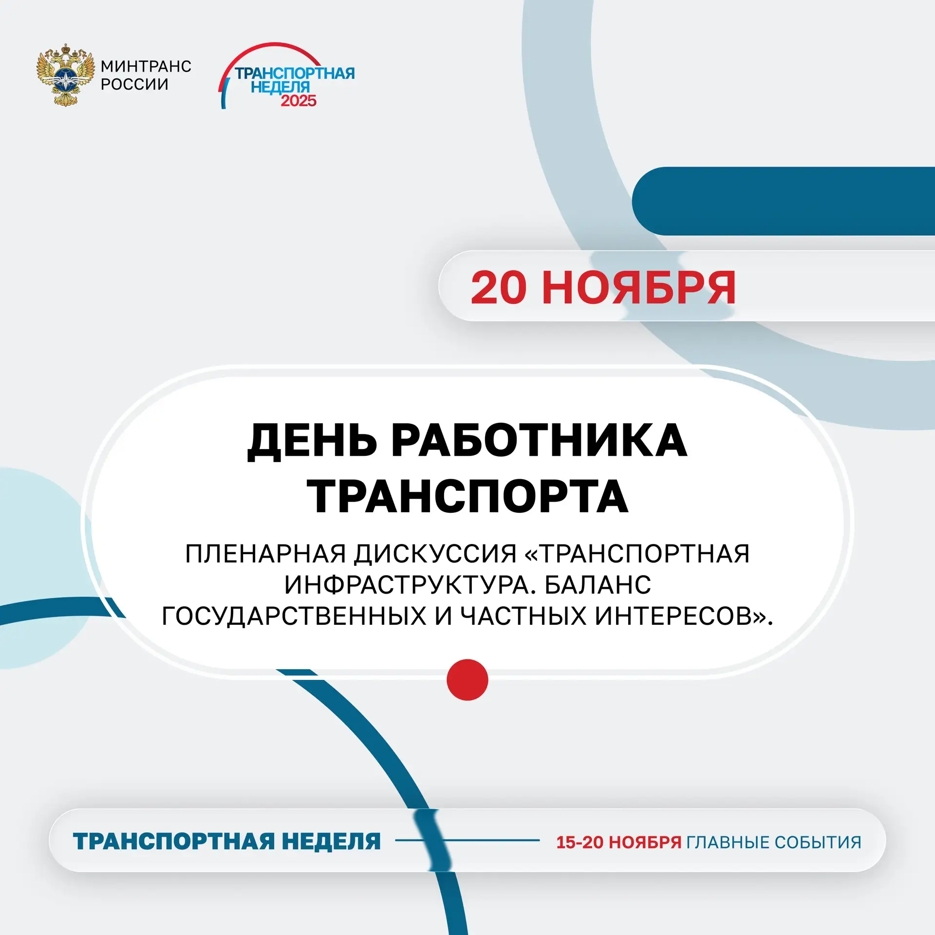 ▶️20 ноября. День работника транспорта! Пленарная дискуссия «Транспортная инфраструктура. Баланс государственных и частных интересов».