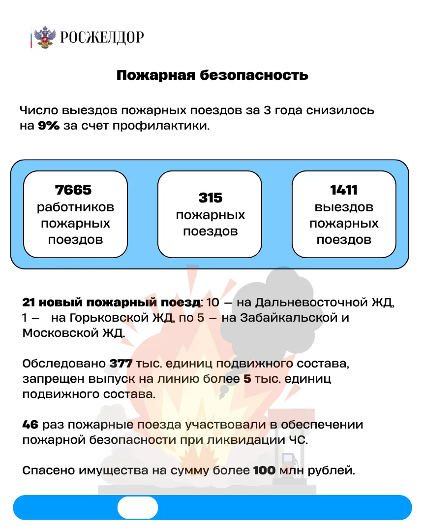 🔥В области пожарной безопасности сократилось количество выездов пожарных поездов на 9% за последние 3 года и на 4,3% по сравнению с 2024 годом. Основная причина сокращения — усиление мер профилактики. При этом масштаб деятельности в цифрах остается значительным.