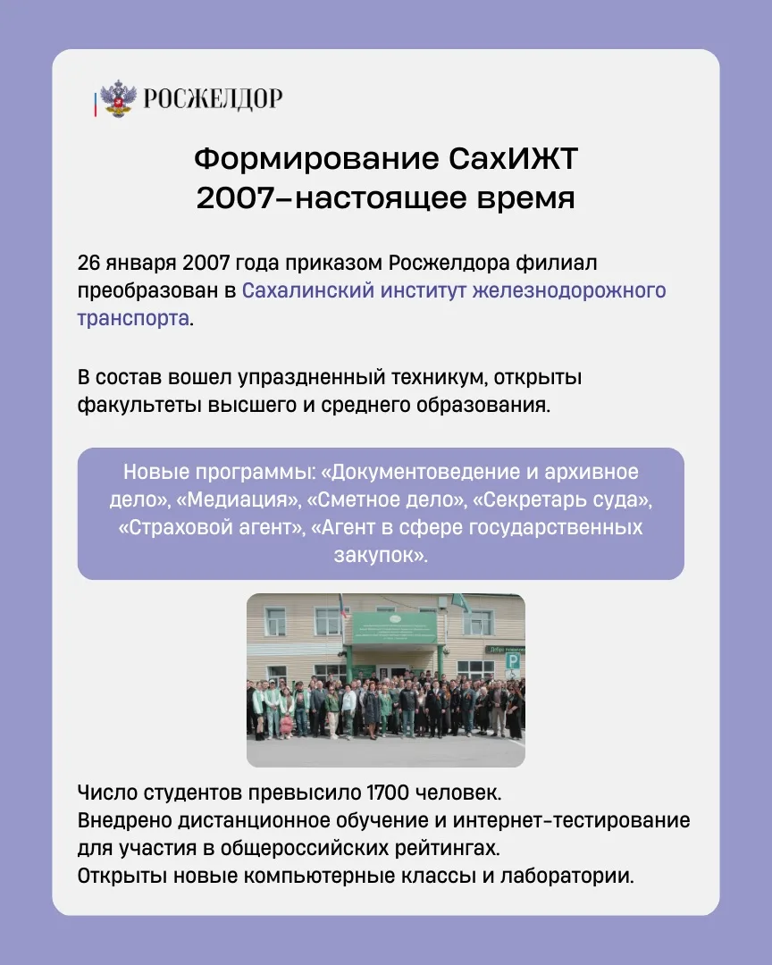 🎓 Сахалинскому институту железнодорожного транспорта — 65 лет!