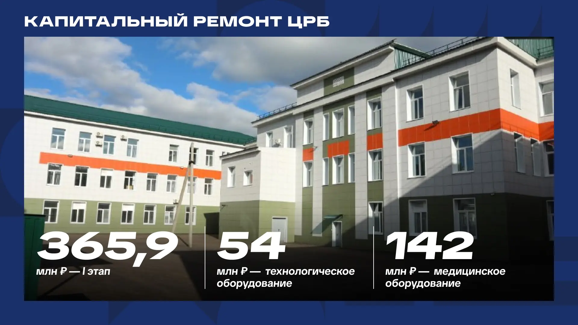Капремонт этого здания будет завершен уже в этом году, а полный ремонт, включая пищеблок, морг и аптеку – до конца 2027 года.