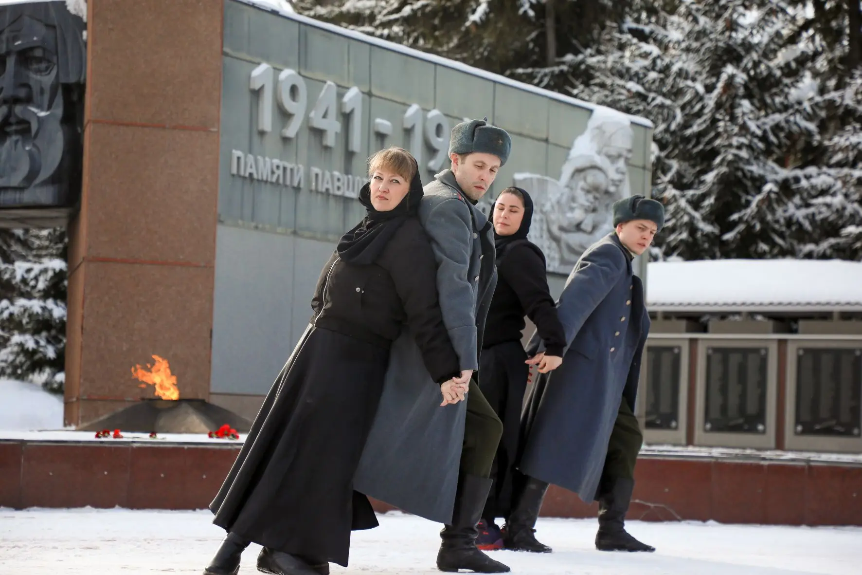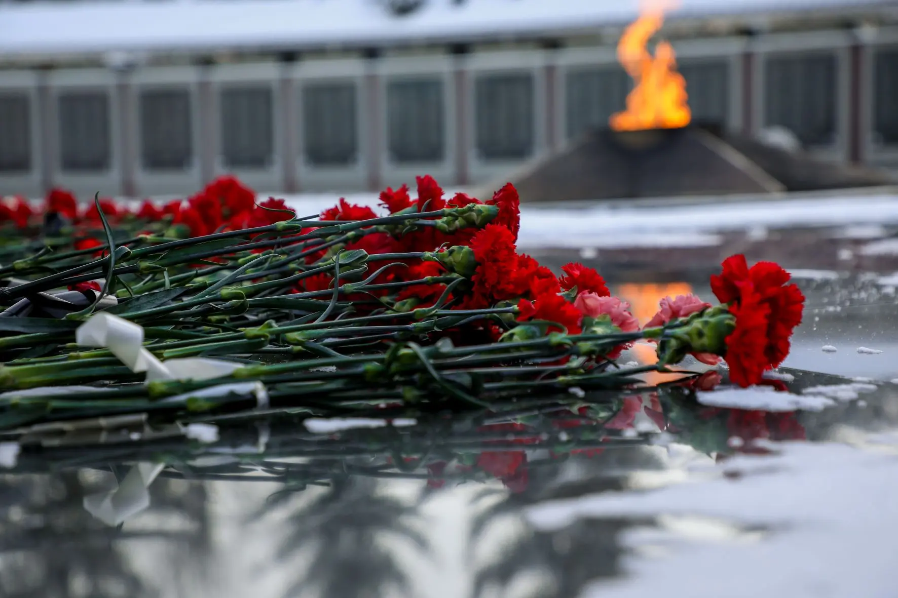 Алые гвоздики у Вечного огня, как символ непрерывающейся памяти народа.