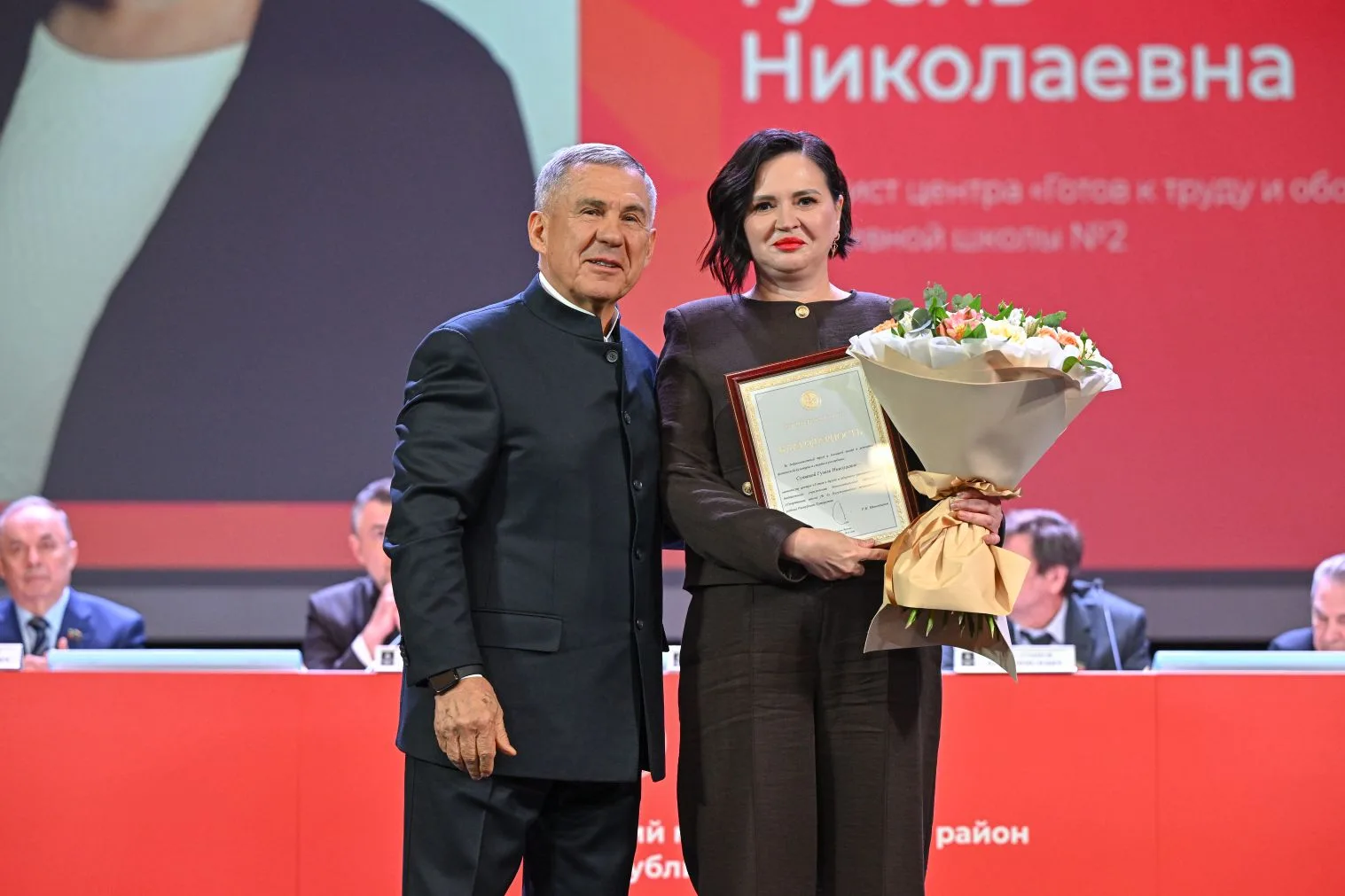 Раиса Республики Татарстан отмечены Диана Николаевна Барсукова, заместитель директора МАУК «Дом техники», а также Гузель Николаевна Суняева, методист центра «Готов к труду и обороне» МБУ ДО «Спортивная школа №2».