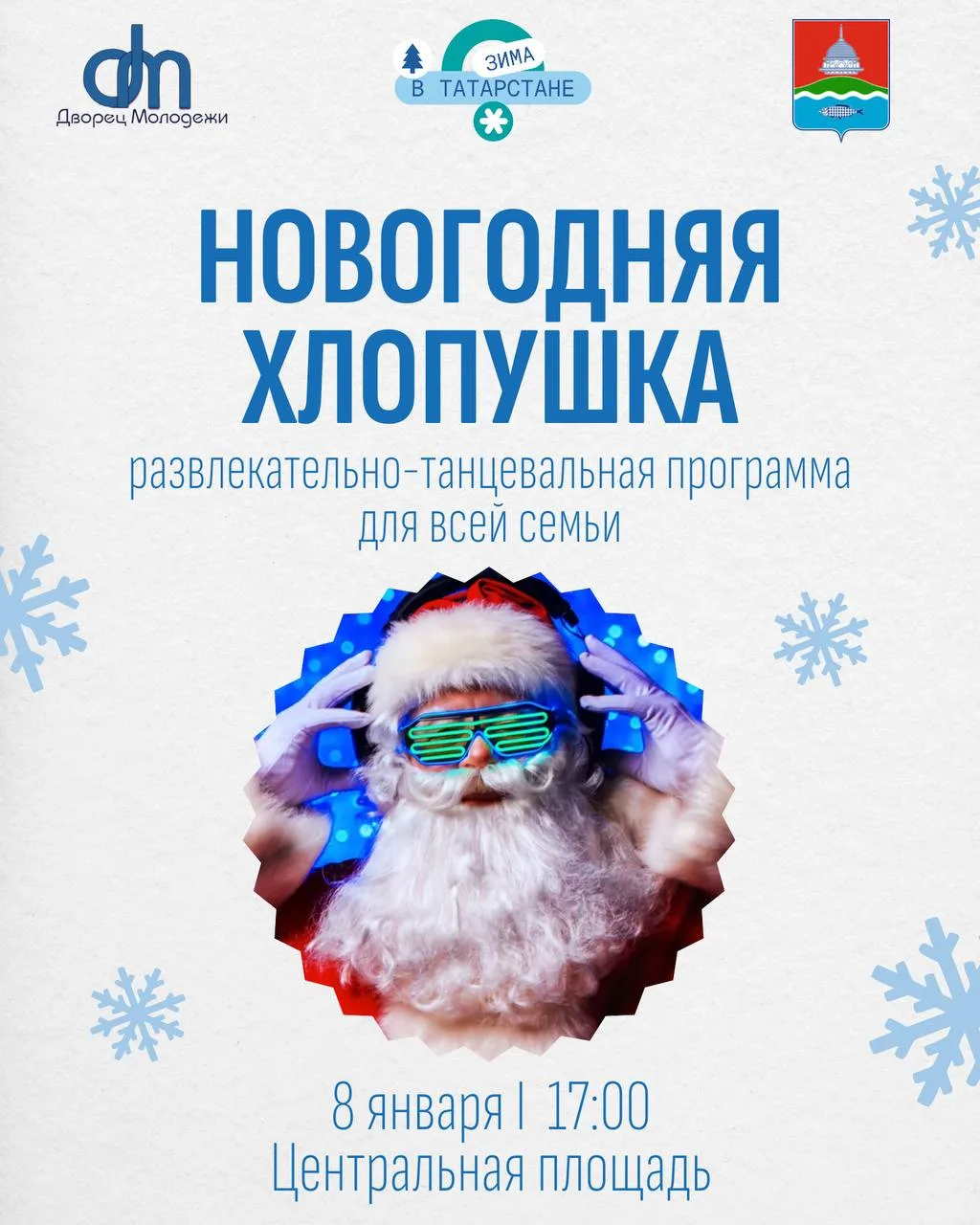 Сегодня ждем всех на Центральной площади. Для вас праздничная программа от Дворца Молодежи - «Новогодняя хлопушка» - танцуют все! 🕺💃