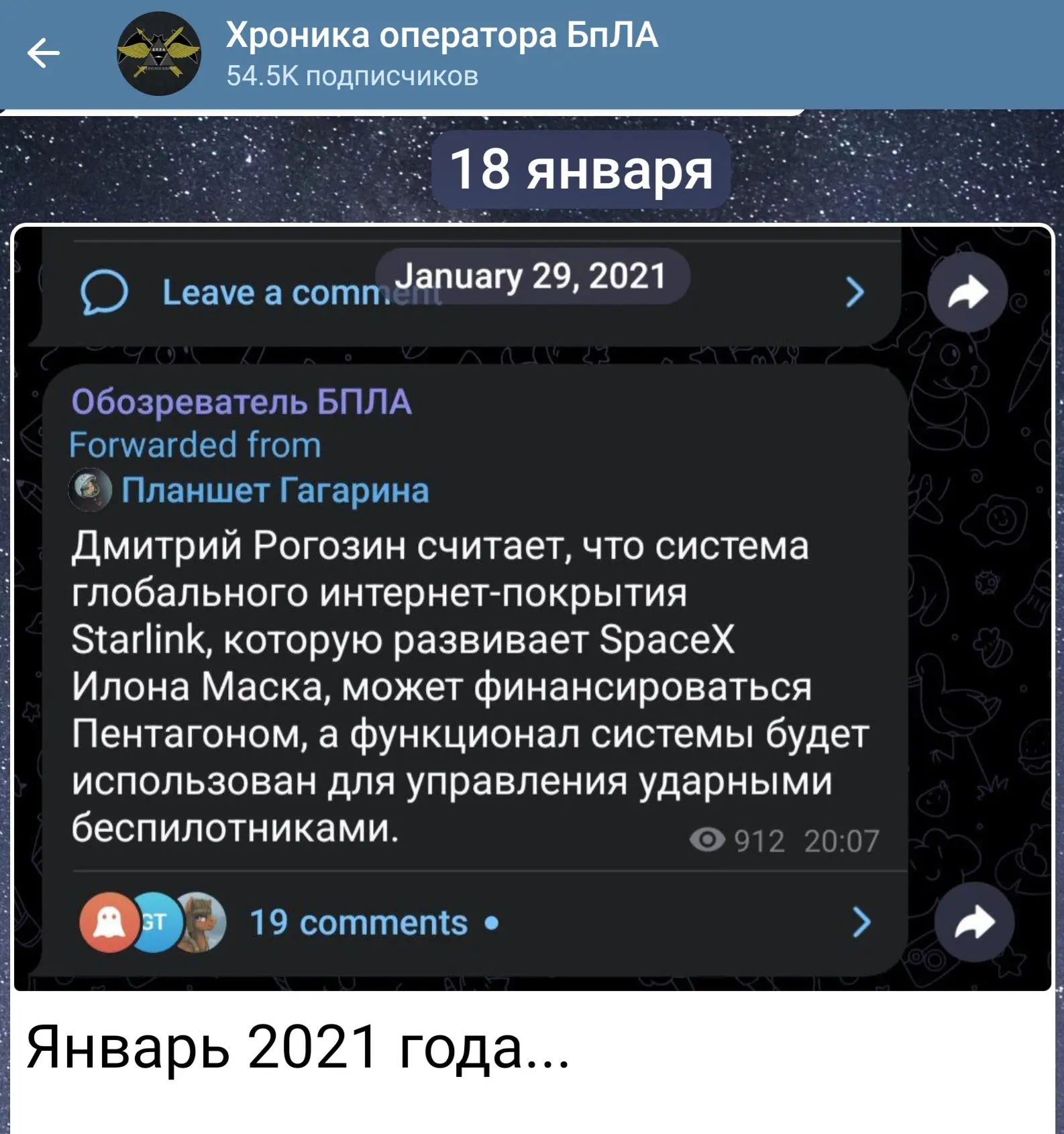 Пару дней назад Дмитрий Баканов, глава Роскосмоса, комментировал вопрос дальнейшего развития орбитальной группировки. Но после его выступления "по традиции" решили заслушать мнение "эксперта", периодически путающего прямой угол с температурой закипания воды. Этот замечательный эксперт в этот замечательный раз перепутал спутники широкополосного доступа в интернет со спутниками оптико-электронной разведки. Грубо говоря, перепутал фотоаппарат с магнитолой. Ну и понеслось... Мол, НАТО и Запад в целом в шоке от наших планов, а Илон Маск нервно курит в тамбуре.